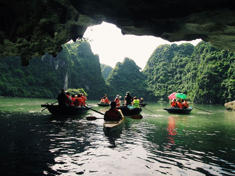 Luon Cave Exploration: Discover the calm waters and the surrounding greenery.